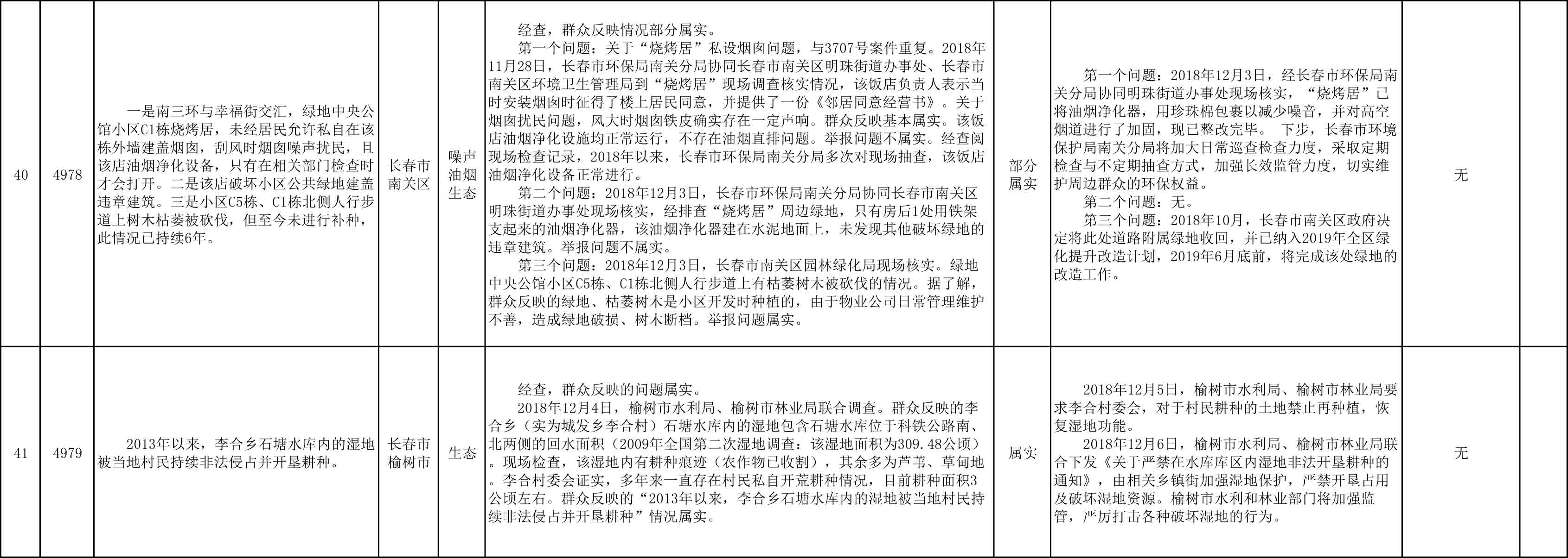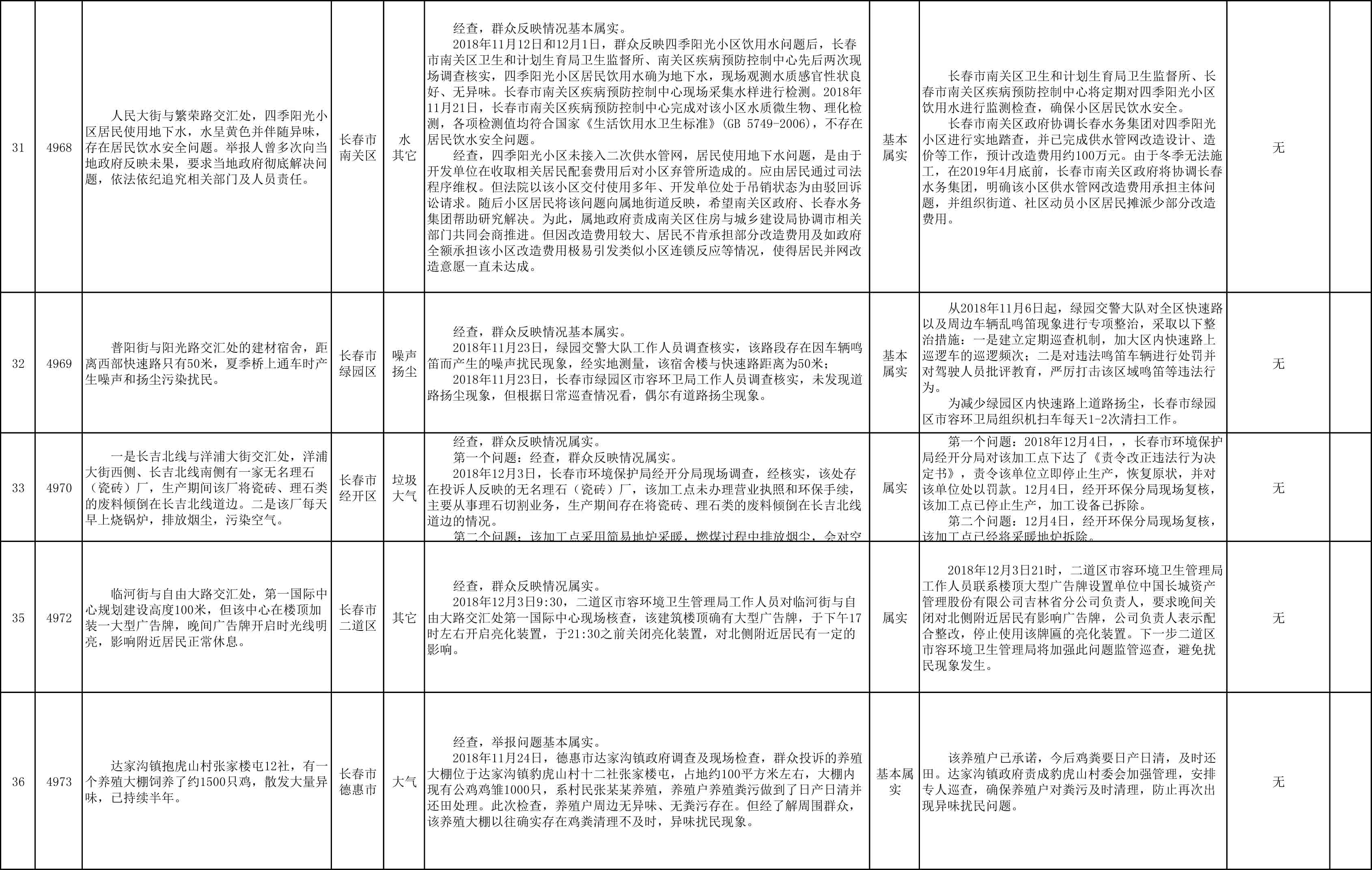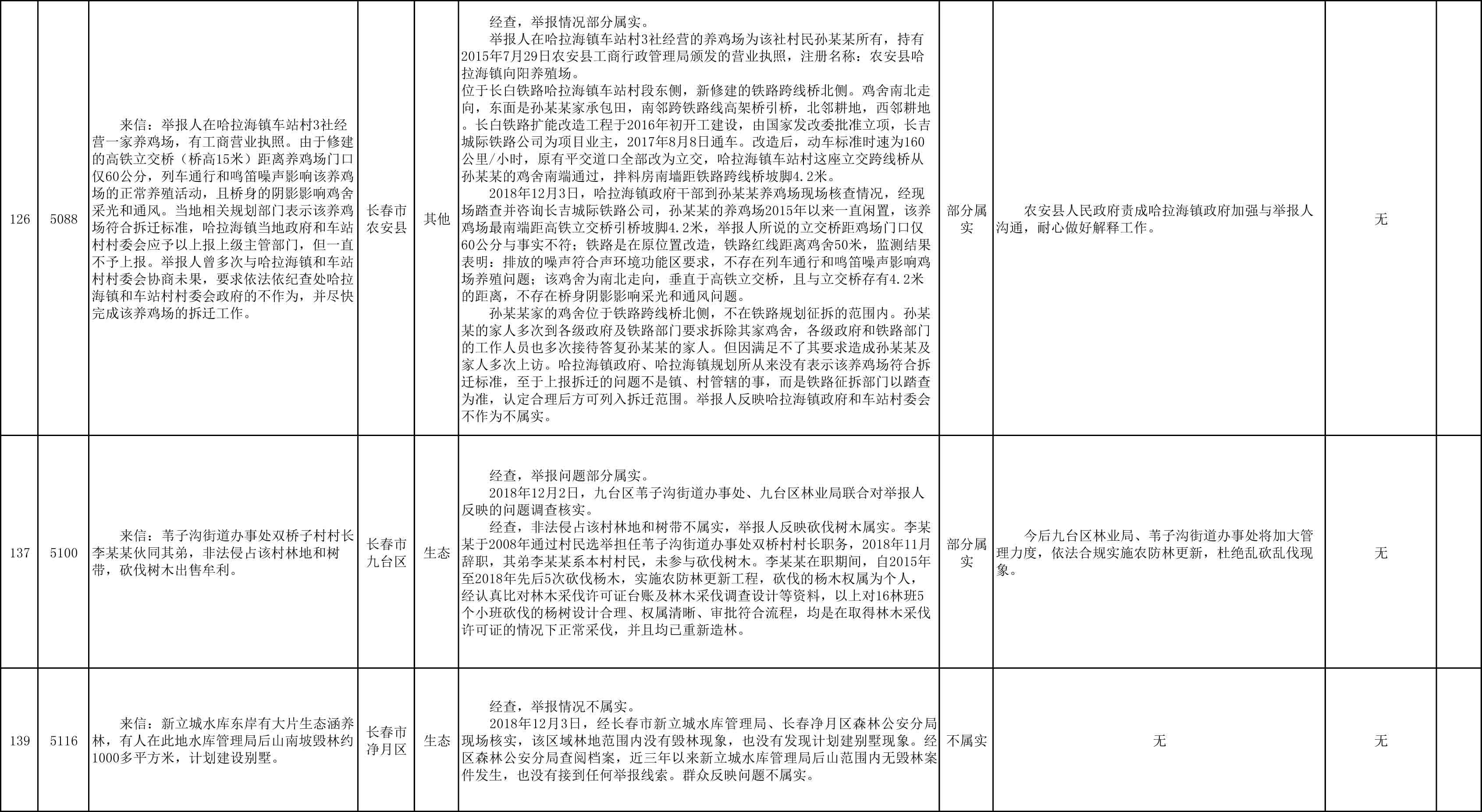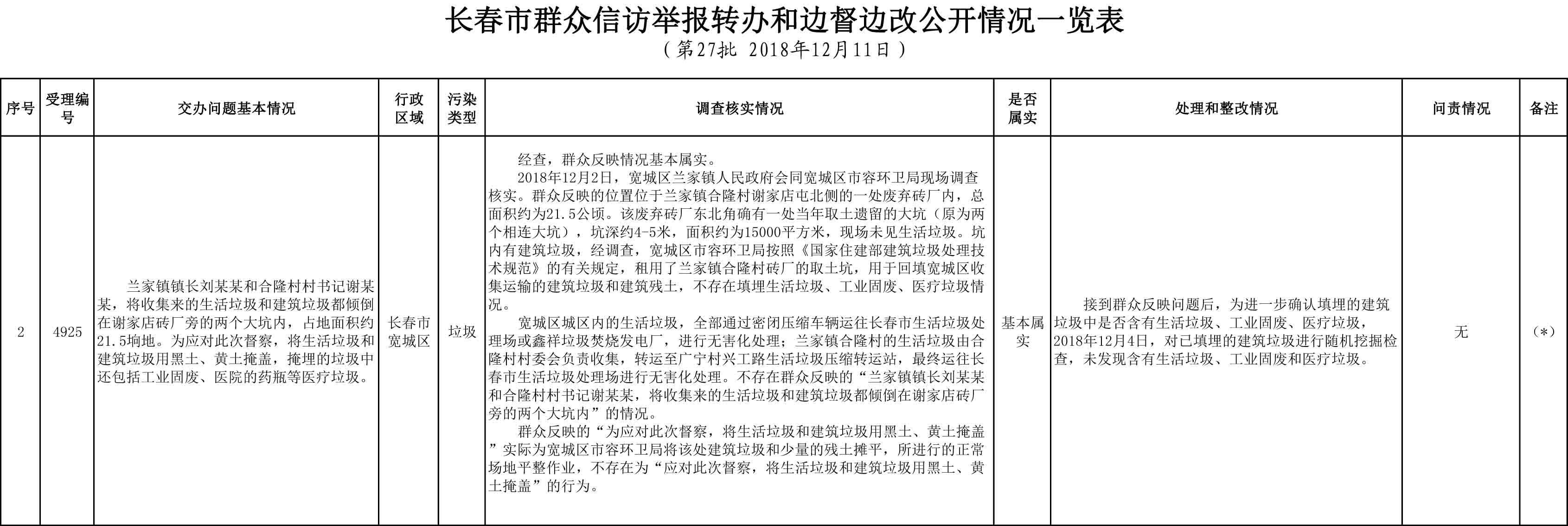 长春市群众信访举报转办和边督边改公开情况一览表(第27批 2018年12月11日)