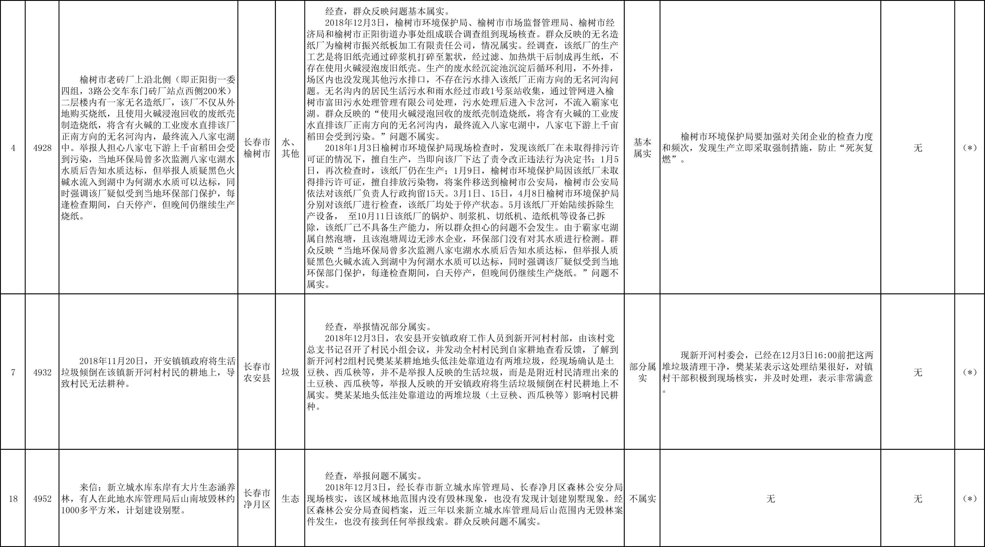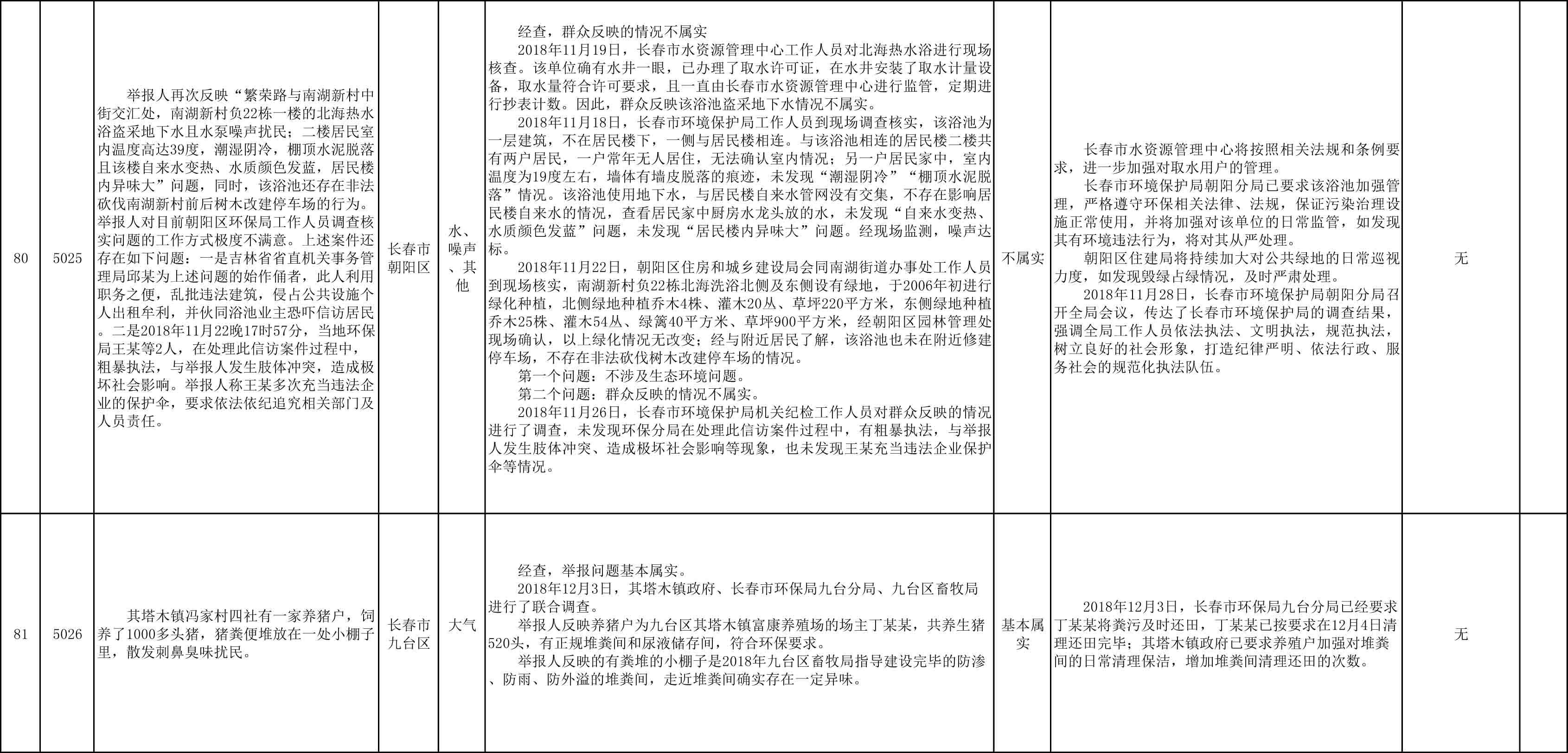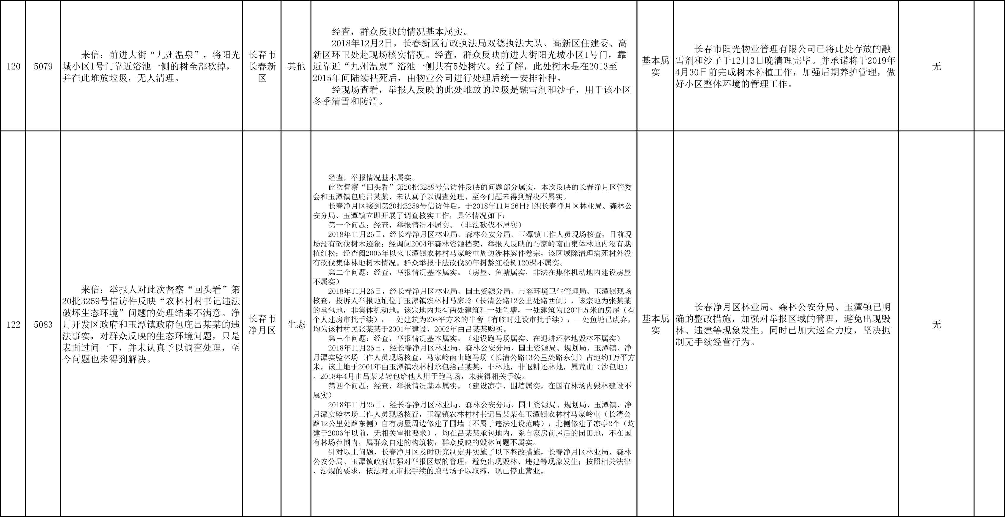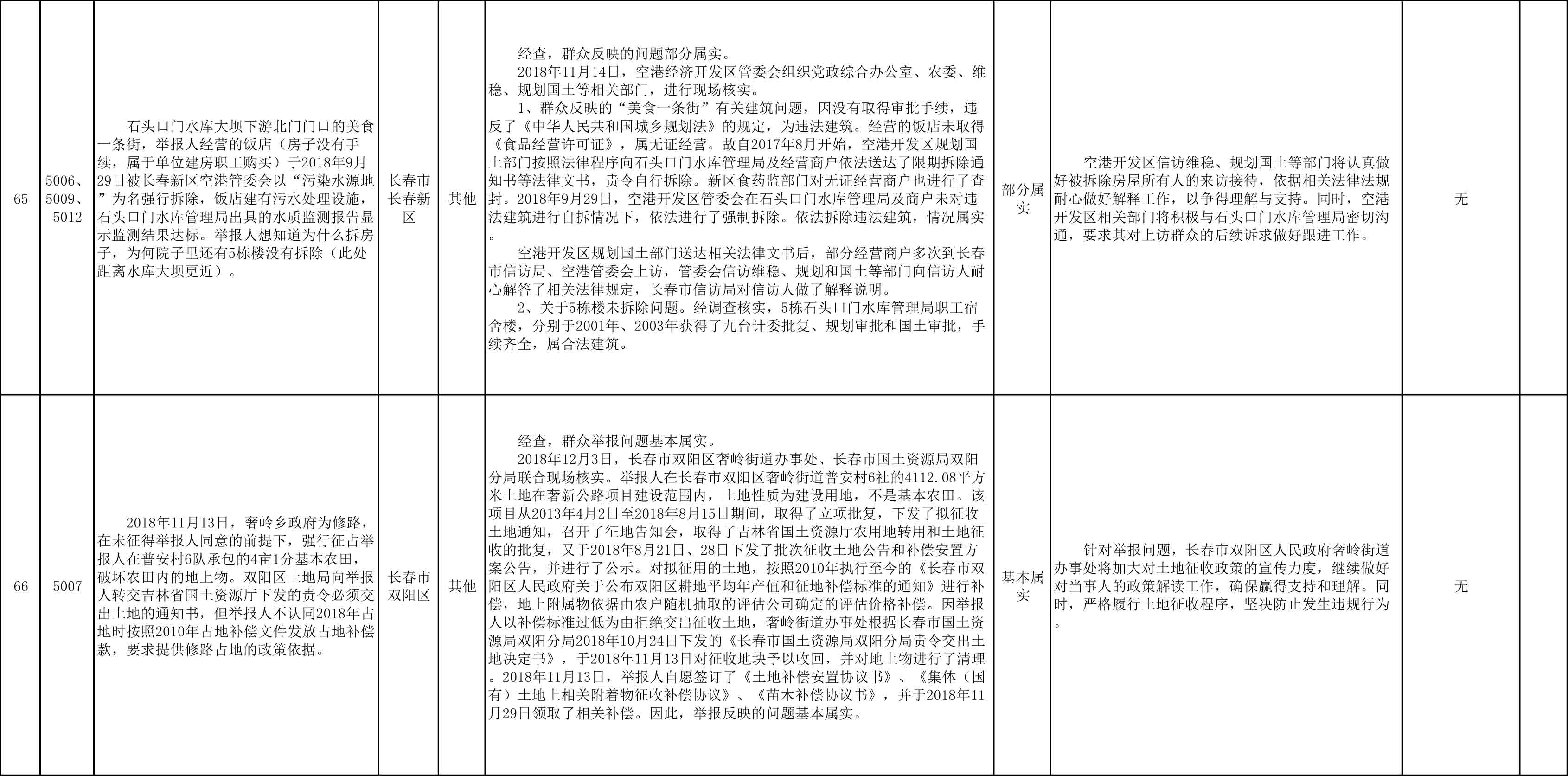 长春市群众信访举报转办和边督边改公开情况一览表(第27批 2018年12月11日)