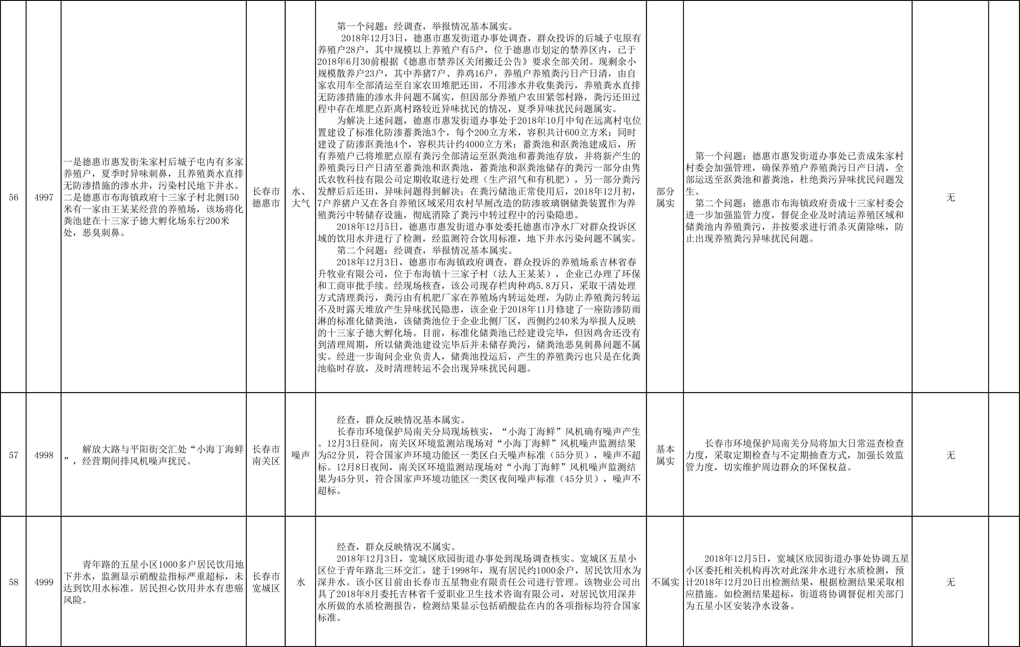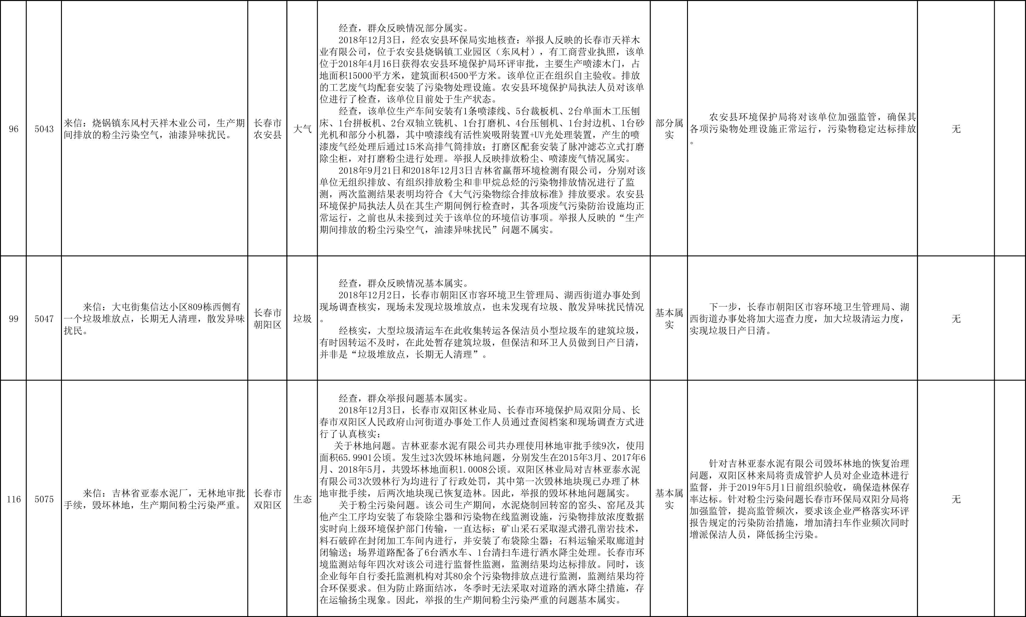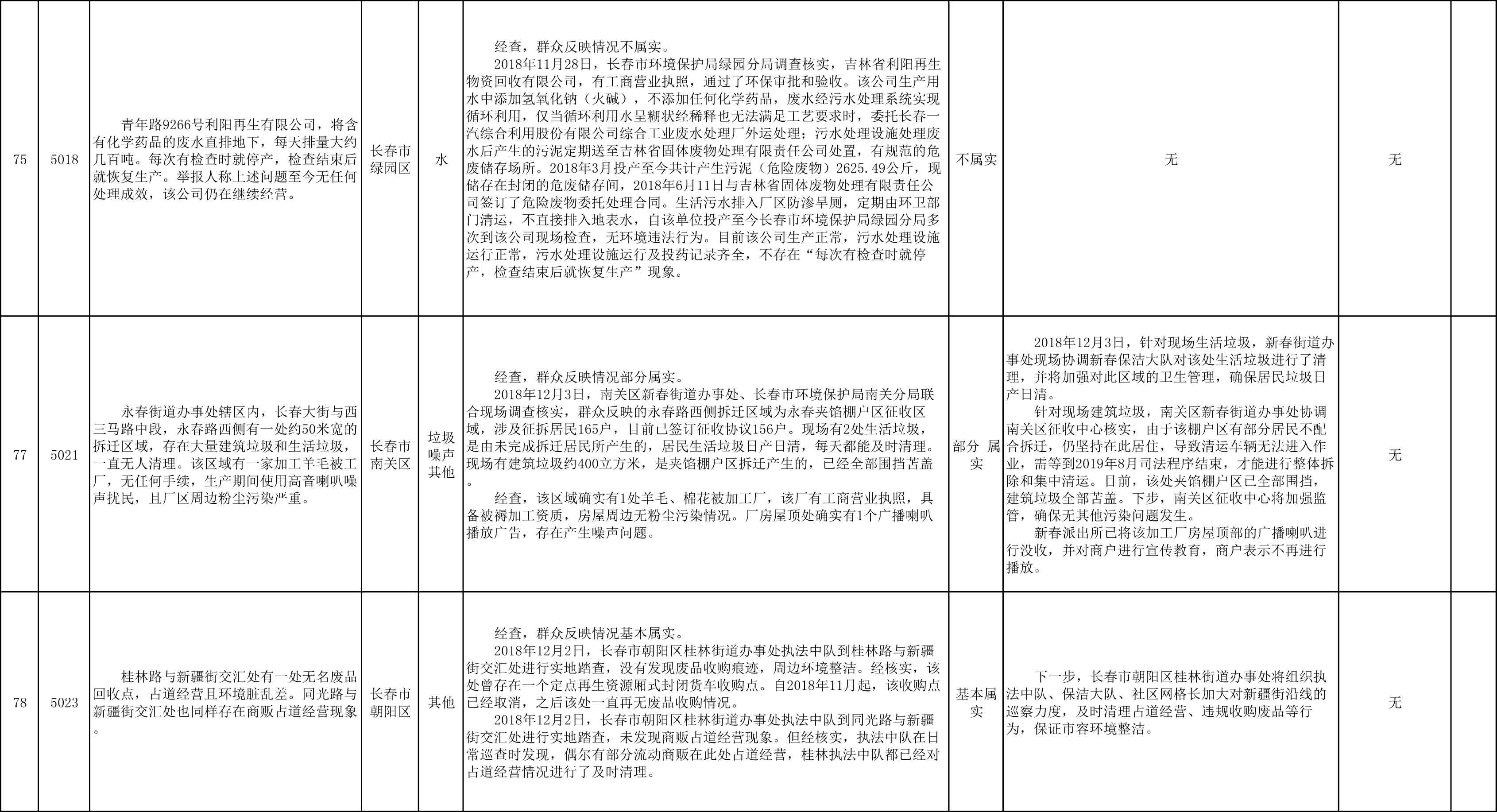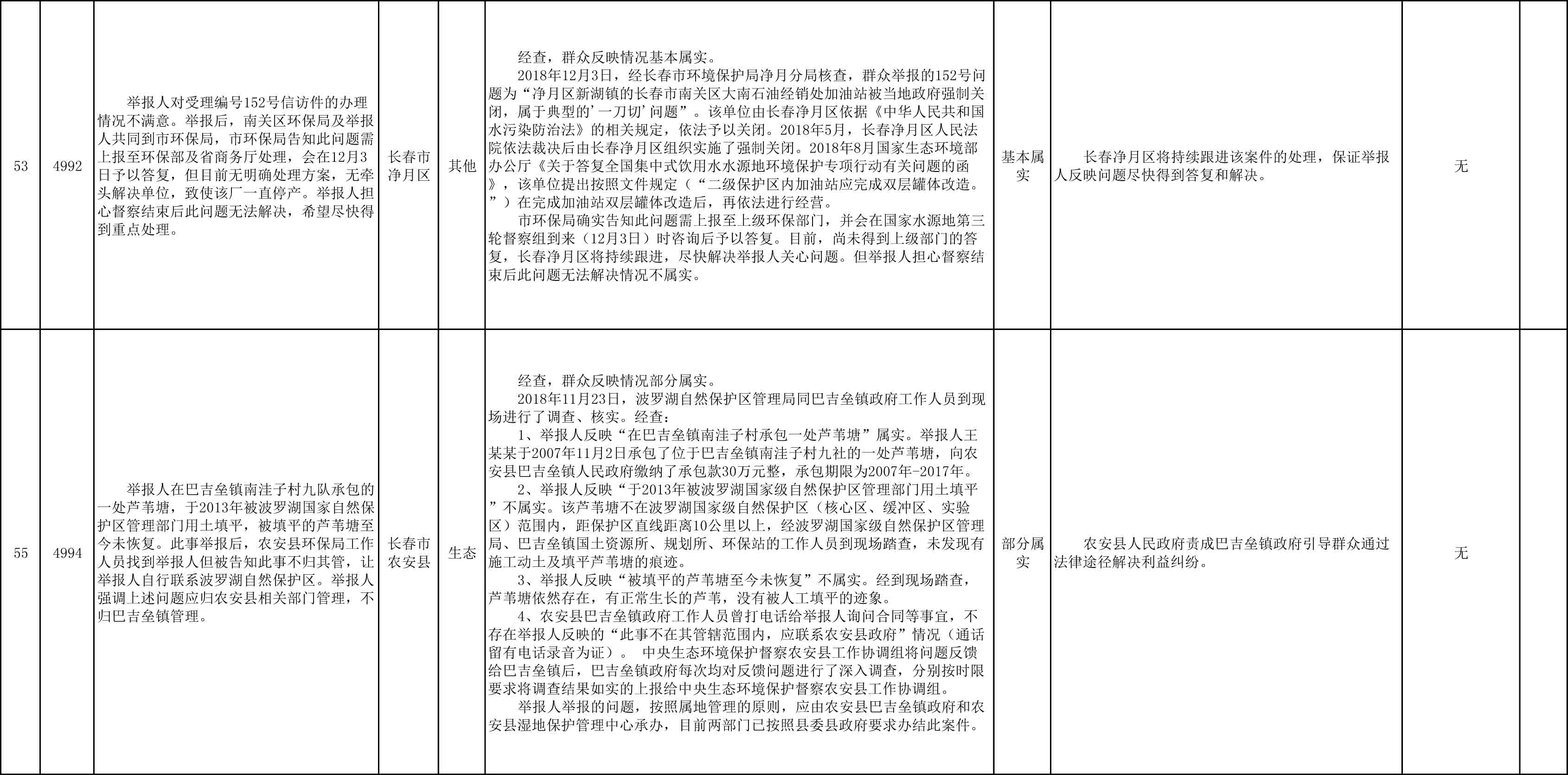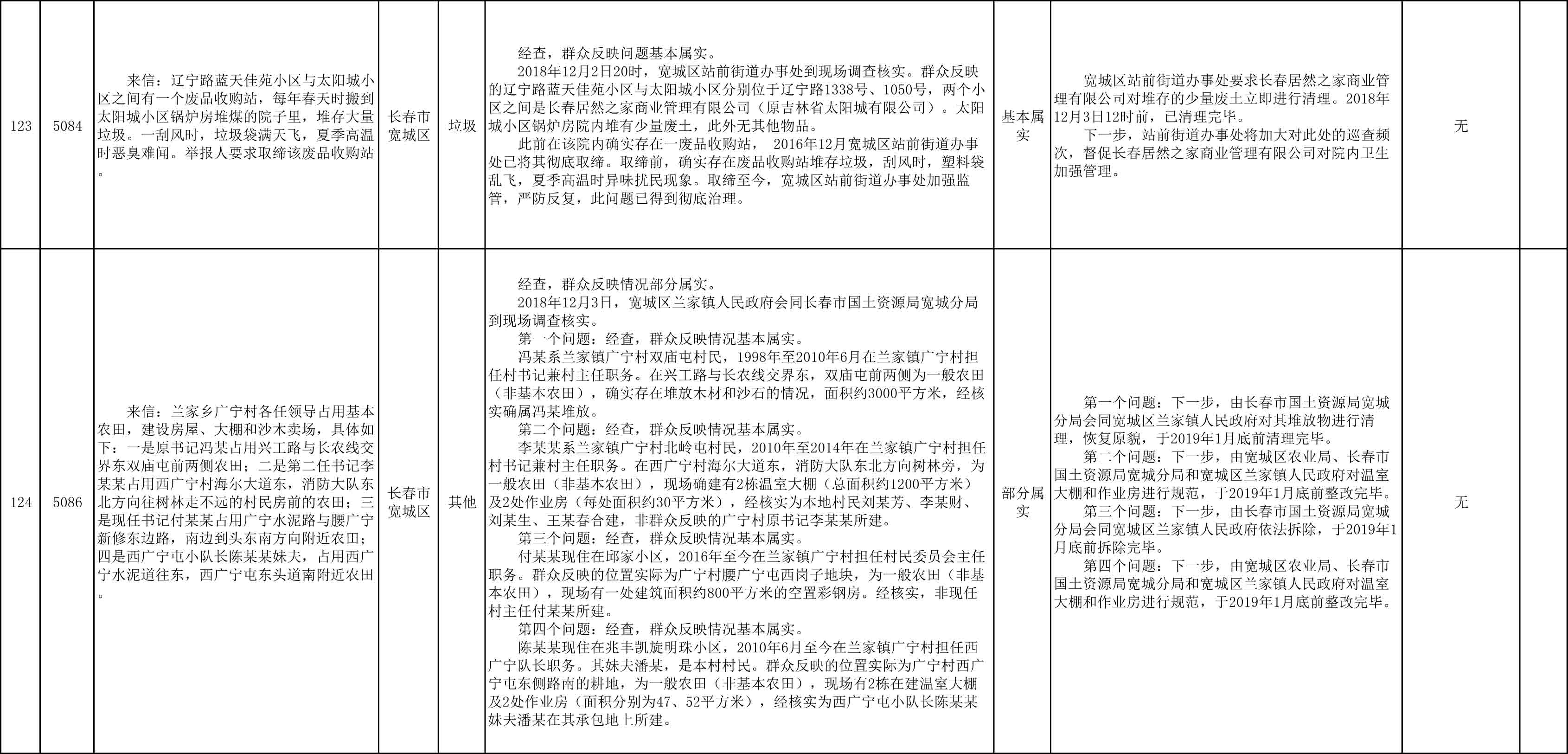长春市群众信访举报转办和边督边改公开情况一览表(第27批 2018年12月11日)