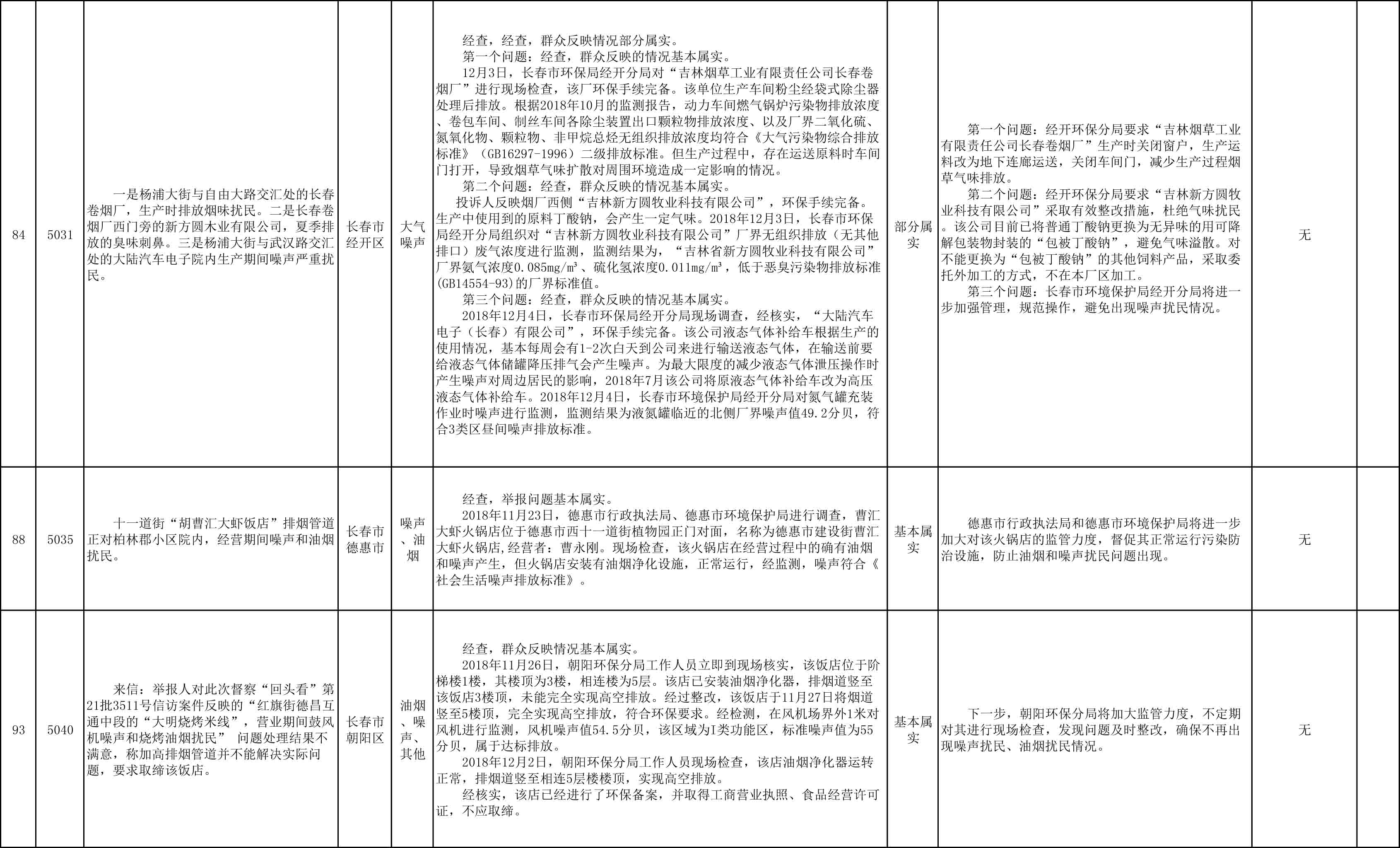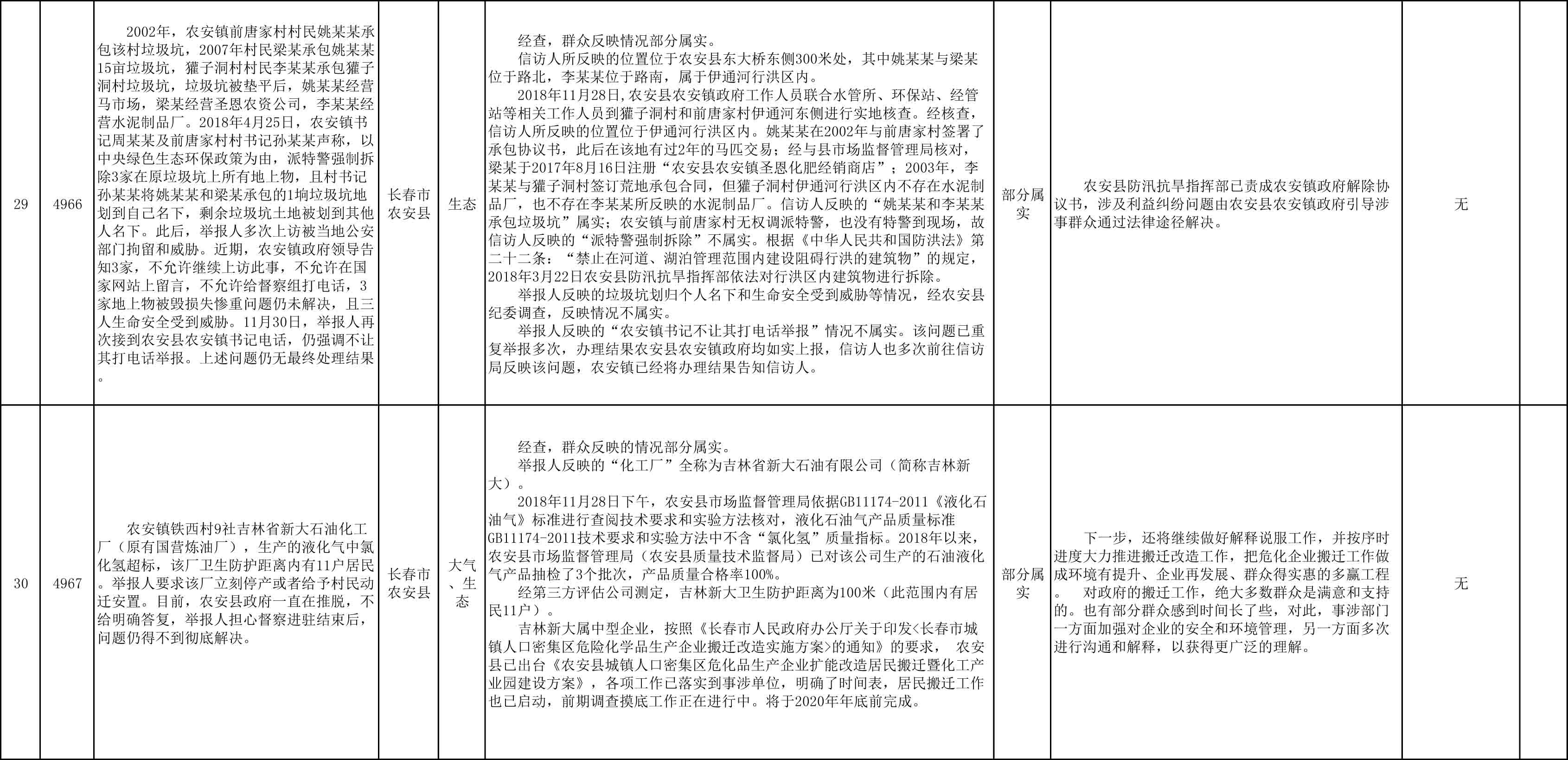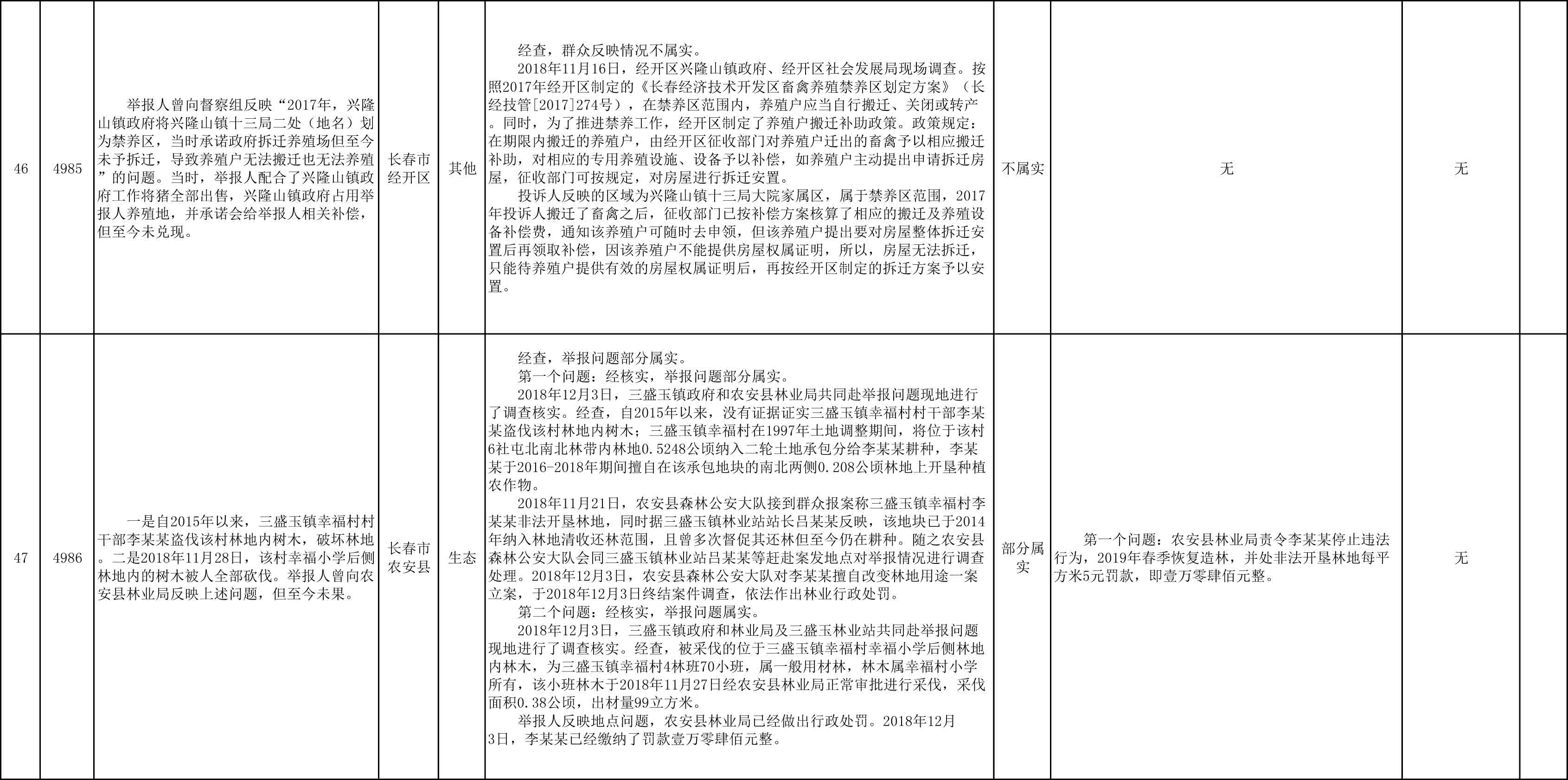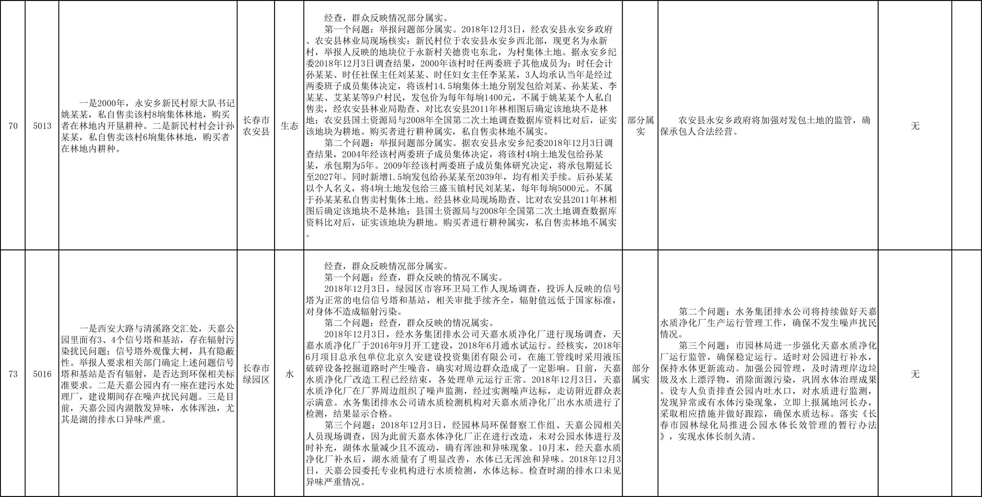 长春市群众信访举报转办和边督边改公开情况一览表(第27批 2018年12月11日)